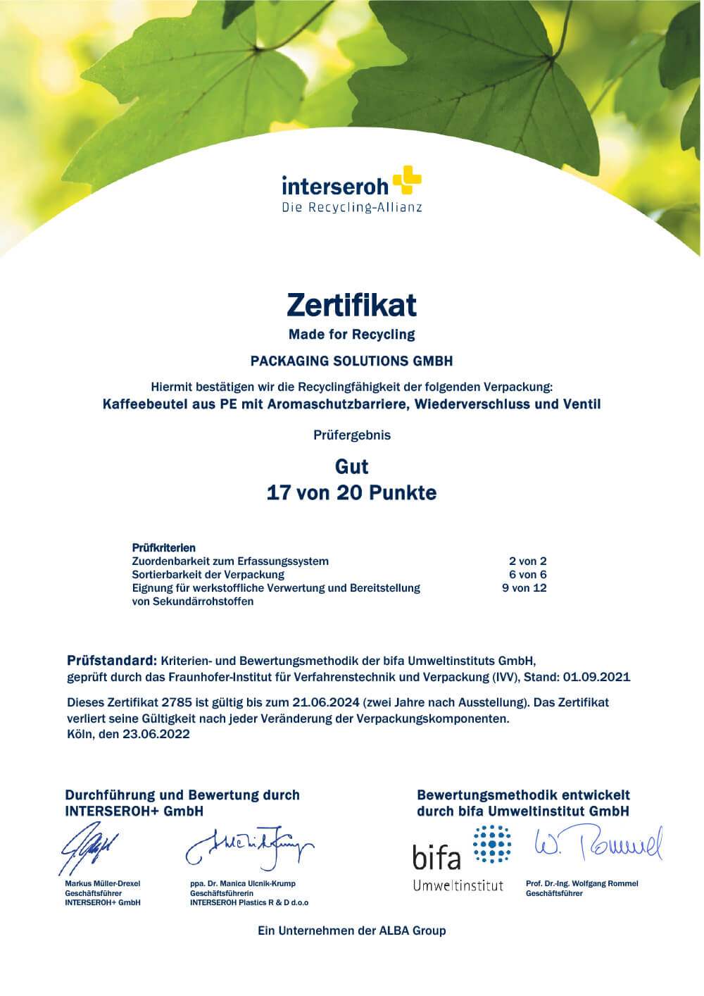 The material specifications are very diverse and tailor-made to the respective product requirements. We take into account all aspects of packaging technologies, the requirements for necessary barriers of the products and the demand for maximum sustainability. You can find more on the subject of the environment/sustainability here.